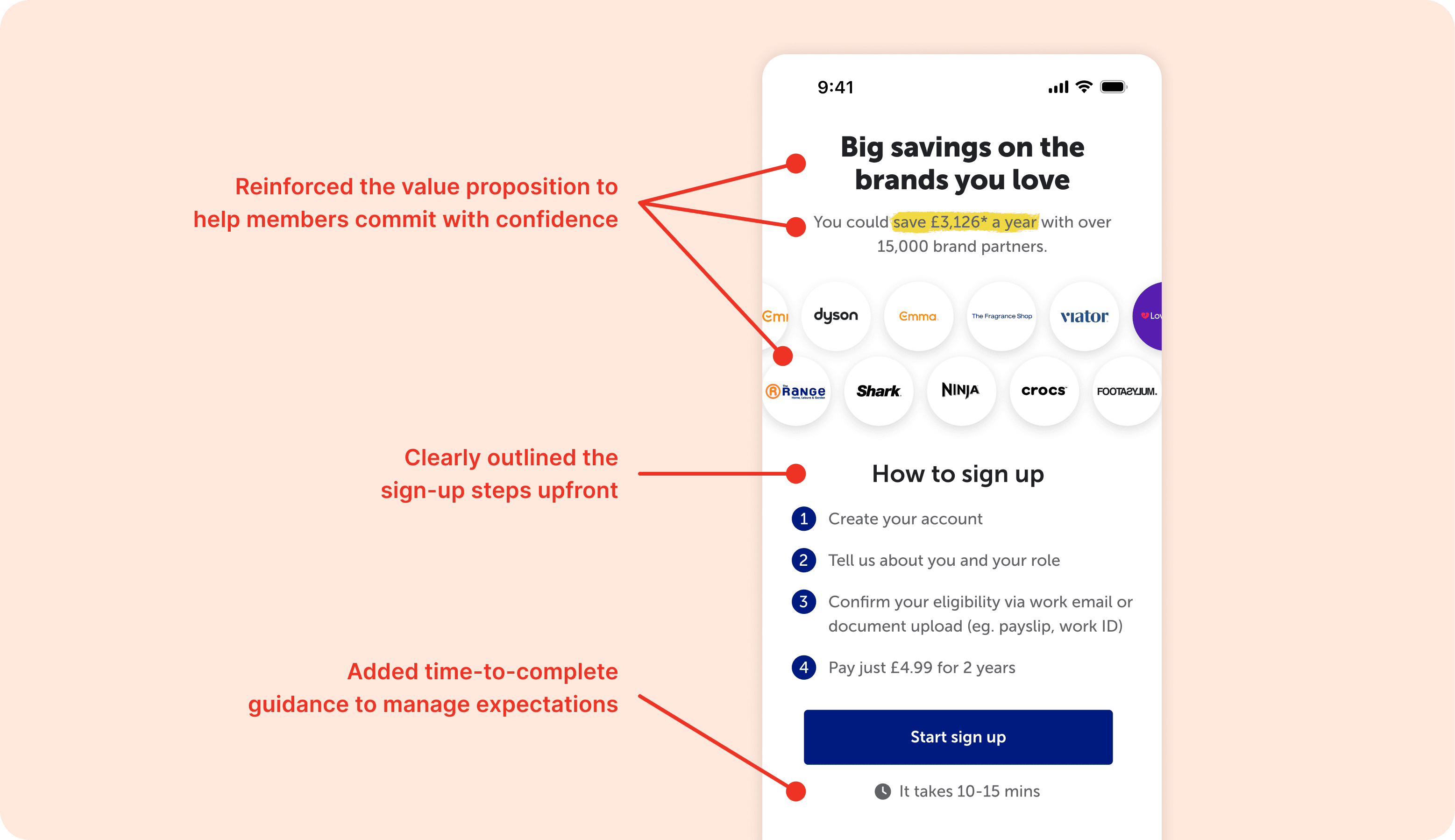 Increase sign-up completion by reducing unnecessary friction and improving clarity across the journey, without changing the underlying business requirements or rebuilding the flow from scratch.